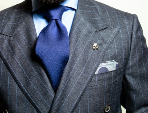 El traje de raya diplomática es esencialmente un traje que se encuentra a un nivel menos formal que los anteriormente analizados. Son precisamente las rayas las que restan formalidad a este traje. Por ello, en aras de dotarle de un grado mayor de elegancia, y equilibrar el resultado, me decanto por uno cruzado, ya que resulta mucho más elegante el tipo de chaqueta cruzada que las simples. De esta manera conseguimos que la formalidad que resta la raya diplomática se vea contrarestada con la elegancia que aporta la chaqueta cruzada.